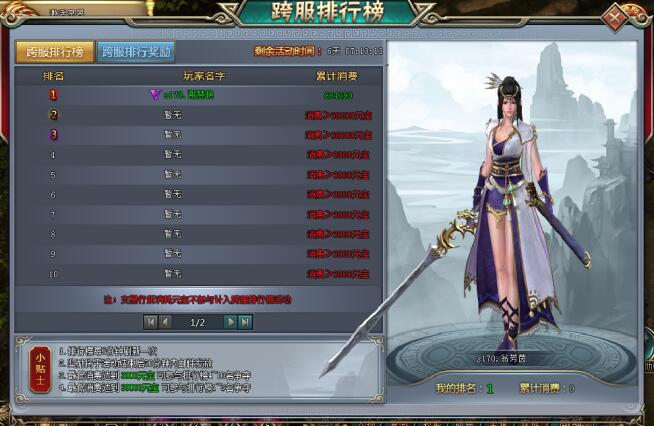 1. 活动期间,可通过消费元宝参与跨服排行榜活动,赢取稀有称号!