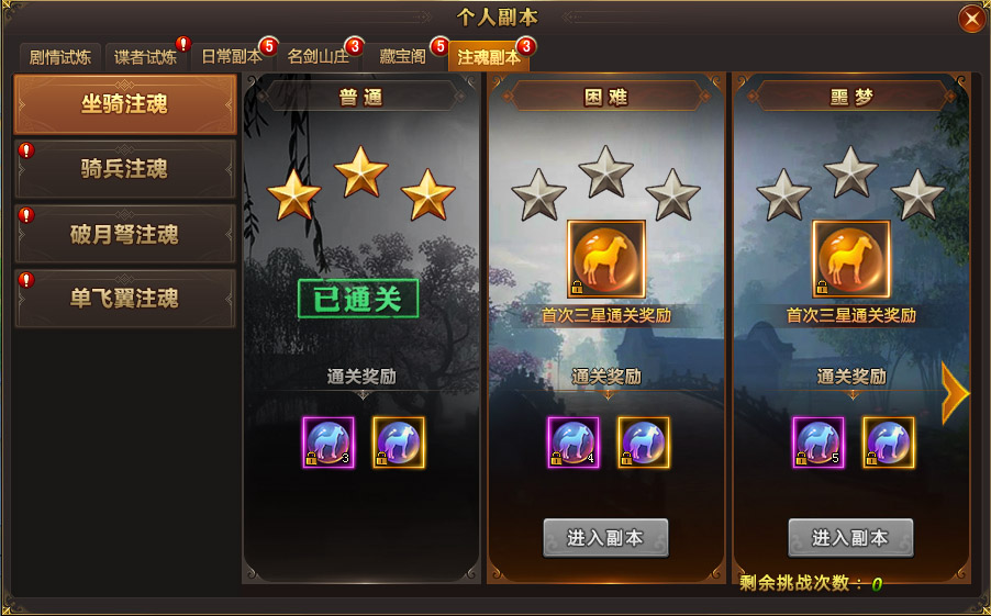 开启注魂系统后将开启对应系统的注魂副本!通过副本大厅---注魂副本进入,通关后将获得注魂升级材料,助您升级注魂,战力飞升!