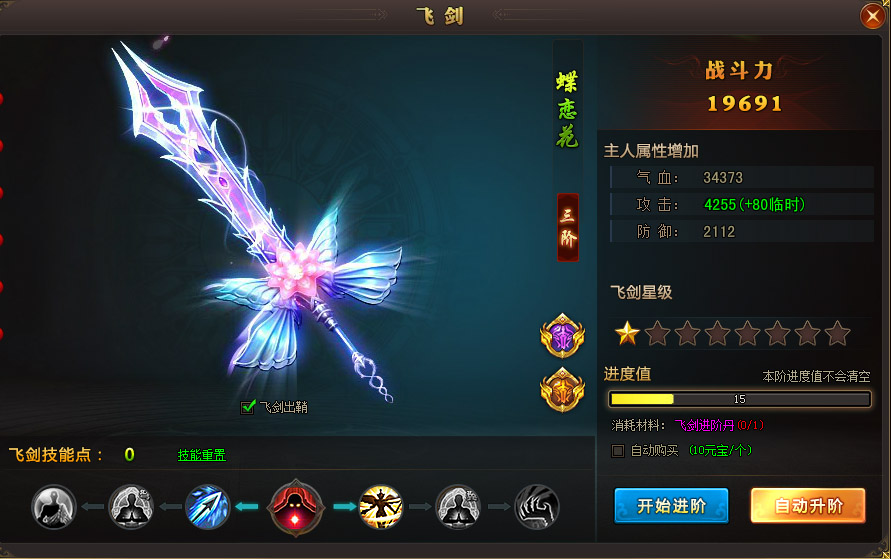 1.新增飞剑系统:开启后玩家将获得一把飞行灵剑,辅助玩家进行战斗,触发天外飞仙技能造成大量伤害!升级飞剑技能还可以获得破月弩和单飞翼特有技能,同时提升破月弩单飞翼装备属性!