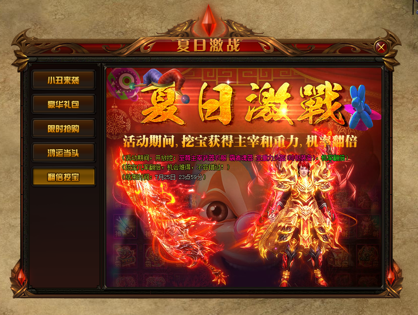 2.活动期间参与幸运挖宝,挖到主宰装备和重力头盔的几率将大大翻倍,千万不要错过哦