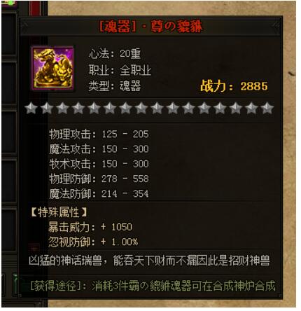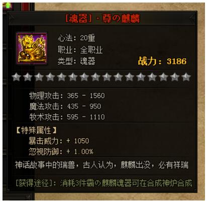 2. 每件至尊魂器可以增加大量的基础属性外,还可以增加暴击威力和忽视防御的特殊属性。