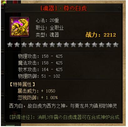 1.至尊魂器在开服45天后,可在神炉中消耗3件霸者魂器、1个锻造石和2W元宝合成。