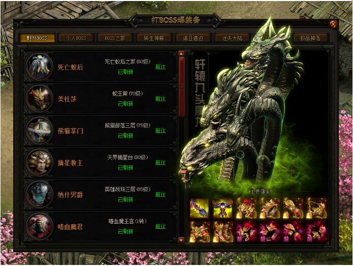 2.增加全新BOSS轩辕蜘蛛女皇、轩辕魔化酒皇、轩辕双子魔王和轩辕九头魔龙。