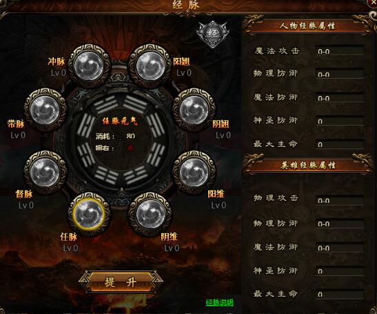 1.新增经脉系统,开服第25天、1转在体魄界面开启