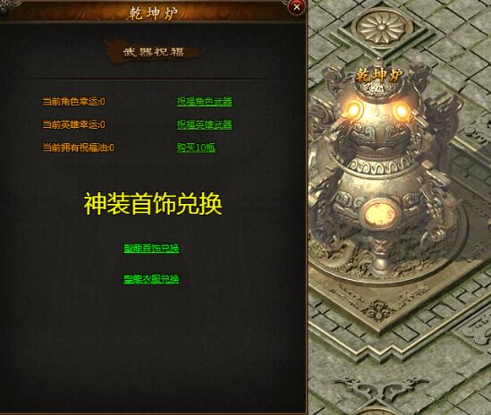 4.开服第8天中州神炉开启神装兑换,跨服boss地图内增加神装兑换材料