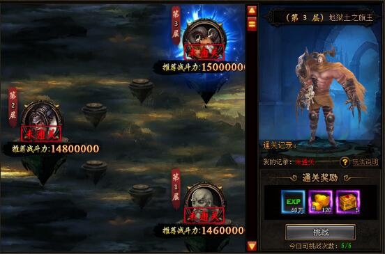 同理,第3层住着的是地狱土之旗主,相传没有1500万战力就别想和它一决高下。怕它作甚,且看明日小编大幅提升了自己的战力再来顺利通关。傲天决战武林地狱级名人堂何等凶险,等你身具1500万战力以上就有资格来体验了。