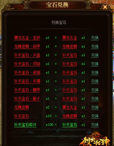 第一名的5转龙头盔在前期还是很稀有的。一件封神装备好比一颗补天宝石(补天宝石需要100颗补天宝石碎片合成)。