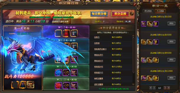 【活动内容】:活动期间,排行榜分为每日积分榜以及积分总榜,每日积分榜是每天进行结算,玩家每日获得积分达32000即可进入每日榜的前10名,积分总榜是累计7天的总积分进行排名,7天内获得积分达64000的玩家即有机会进入前10名,另外还有每日个人的积分目标奖励