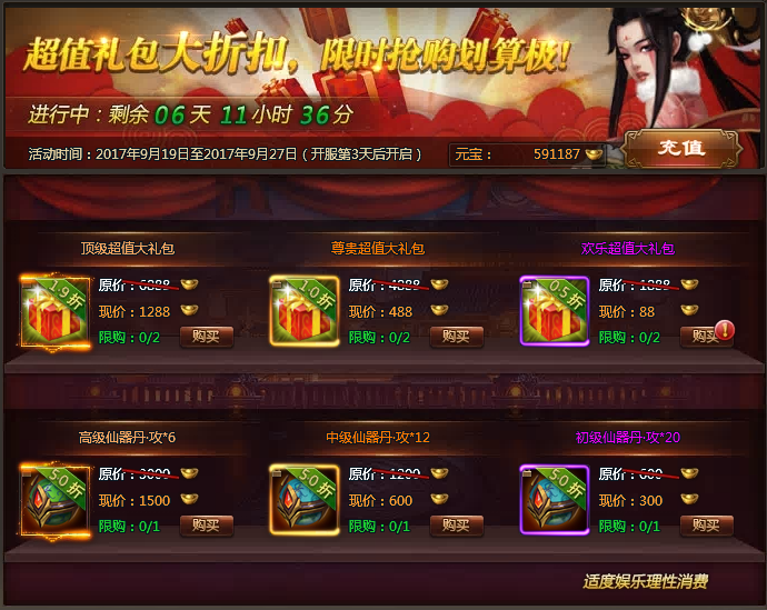 【活动内容】:超值礼包打折扣,限时抢购划算极!