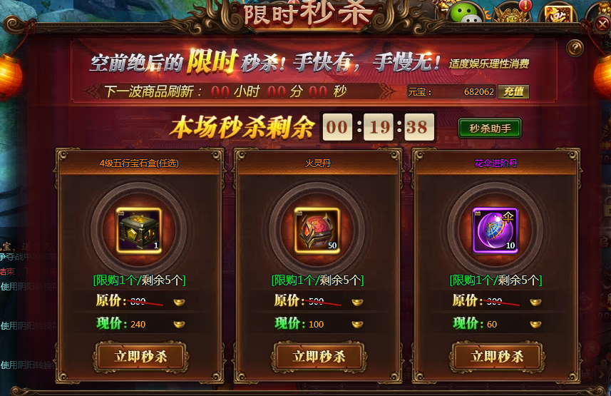 【活动内容】:活动期间,每天12-14,18-20点开启,4个小时,每5分钟刷一次,每个物品跨服内限购10个,手快有,手慢无!