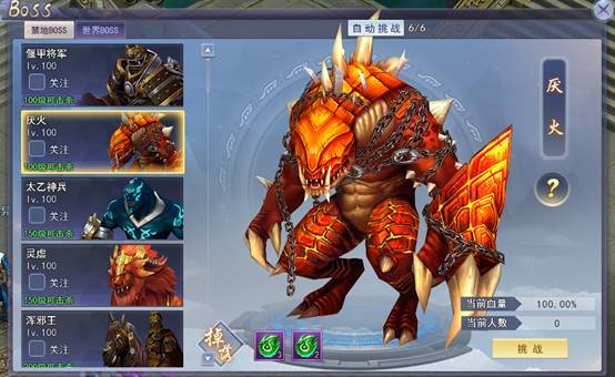 ●通过主UI的BOSS按钮可打开禁地BOSS界面