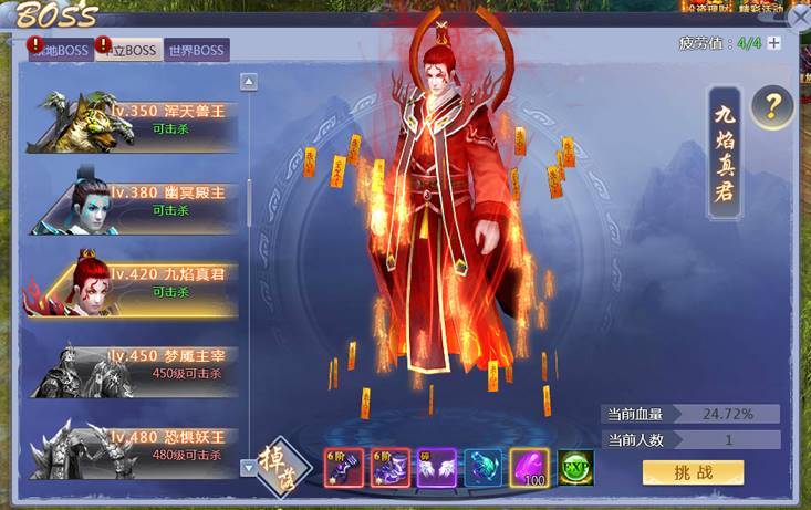 ●通过主UI的激战BOSS按钮可打开中立BOSS界面