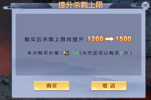 ●玩家可消耗绑元购买杀戮值上限,提高VIP等级可增加购买次数