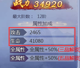 ●升阶属性:玩家可消耗升阶材料来升阶剑灵获得属性加成
