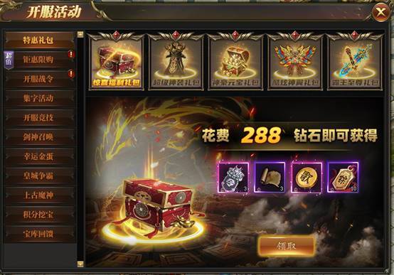 活动期间内玩家可花费少量钻石购买丰厚礼包