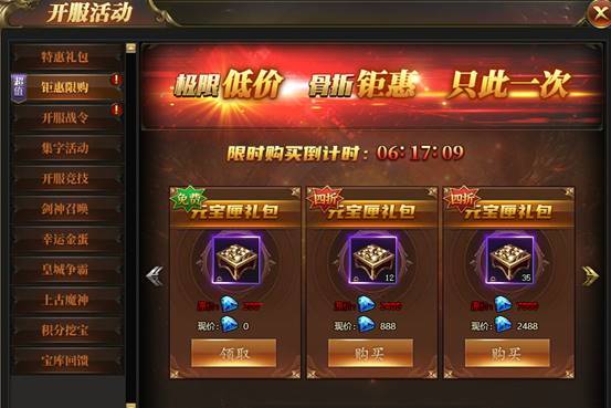 活动期间内,玩家每日可免费领取惊喜福利礼包。更有超低折扣钜惠礼包每日更新。