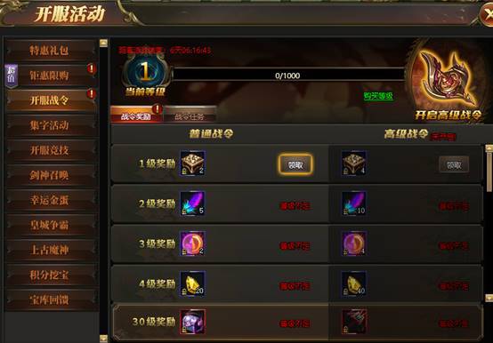 活动期间内,玩家完成战令任务领取战令奖励。花费15888钻石开通高级战令即可直升10级并领取绝版称号、绝版时装及海量丰富道具。