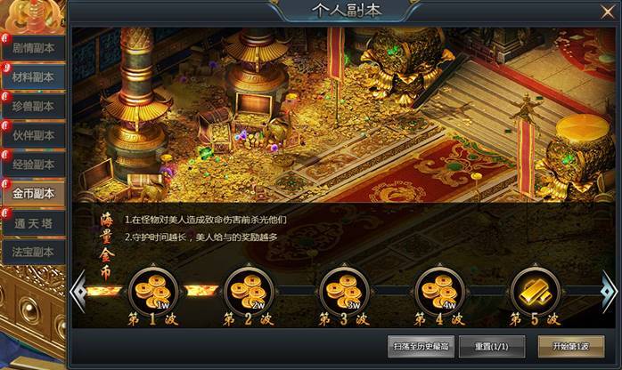 点击界面左上角的副本大厅,选择金币副本,即可进入副本。