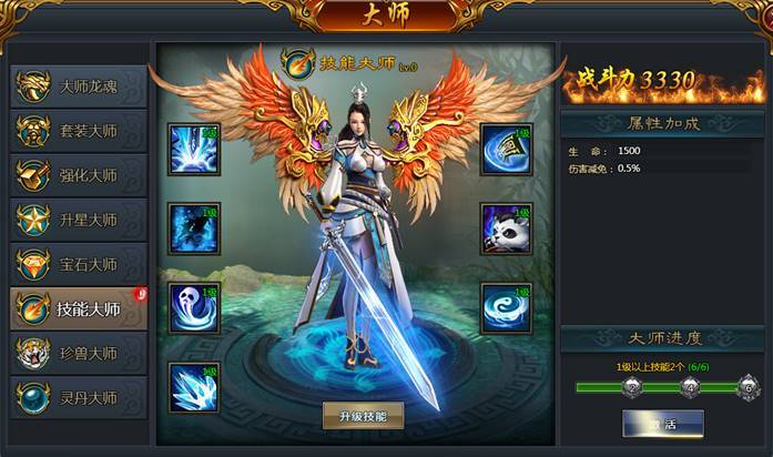 当技能等级达到一定要求时,我们还可激活技能大师,更进一步加强我们的战斗力!