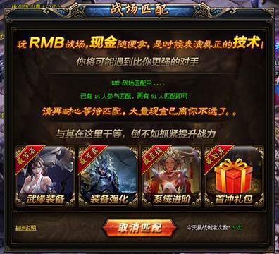 RMB战场匹配界面(注:在匹配过程中无法参加其它活动)