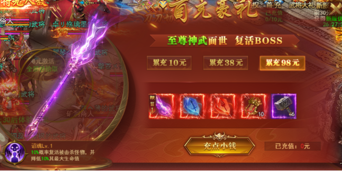 众多礼包助力提升,新手大礼、翅膀大礼、坐骑大礼、武将大礼、淬火大礼、宝石大礼等。