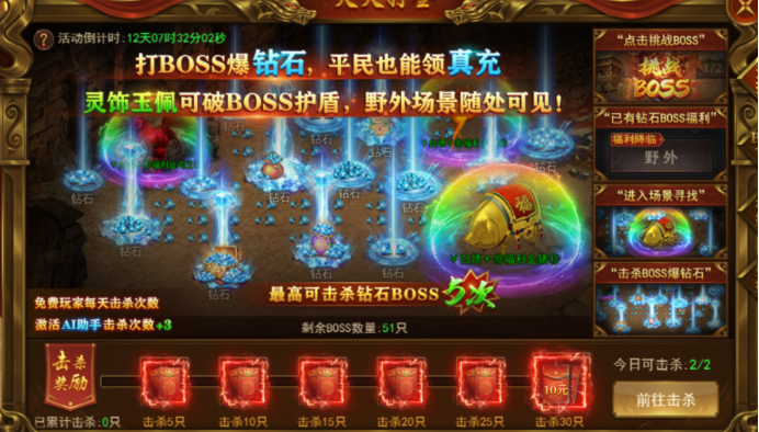 活动期间完成条件即可挑战福利BOSS,越高级BOSS掉落奖励越好