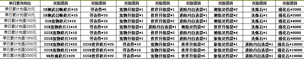 一、单日累充档位奖励(次日重置,每档位每日限领1次)