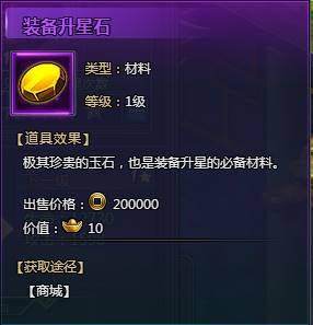 升星消耗装备升星石,可从商城购买获取。