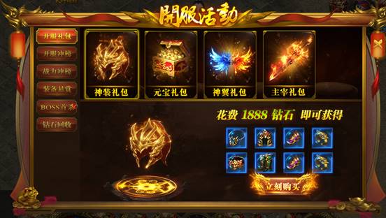 1、神装礼包: 1888钻石